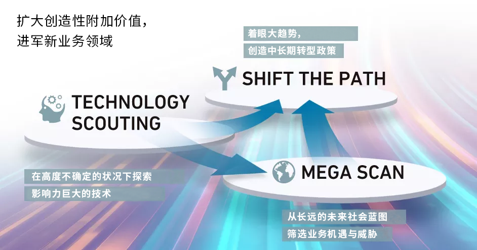 Scouting三部分组成。对于值得关注的大趋势,我们正在探索三菱重工集团的业务转型方向。